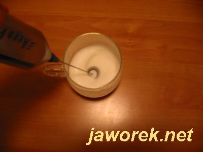 takie małe urządzenie na baterie do ubijania mleka lub śmietany, jak na zdjęciach).
